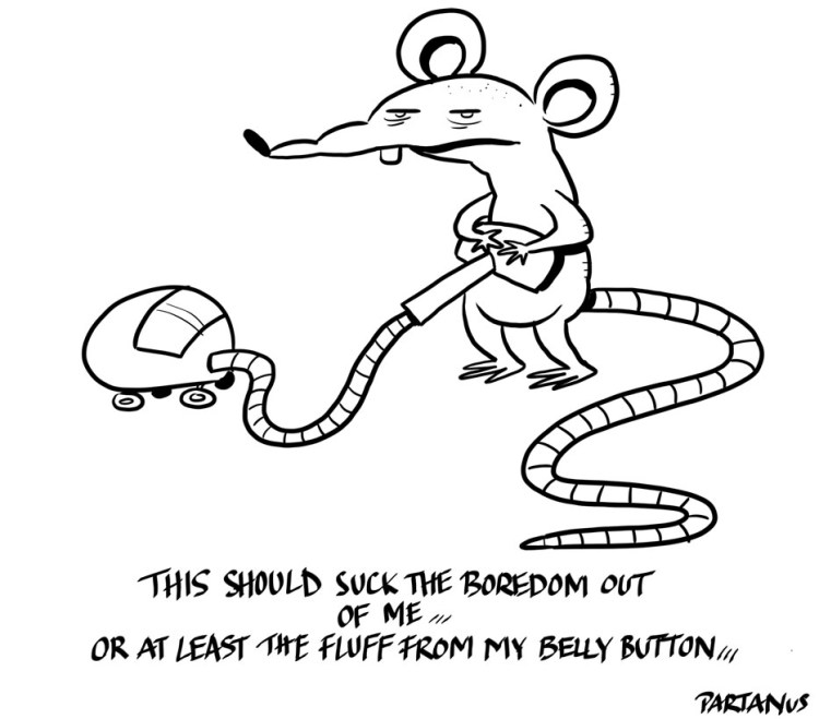 “Dit zou de verveling uit mijn lijf moeten zuigen…Of althans mijn navelpluisjes…”
