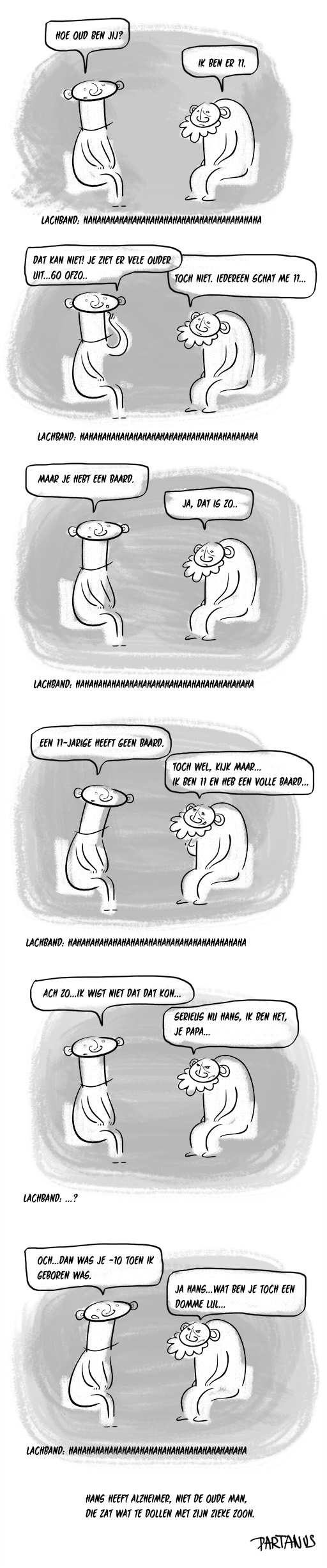 Alzheimer Posted byPartoonMay 15, 2011October 3, 2011Posted inOmwentelingen, Revolutionaire ideeënTags:cartoon For English, please scroll down. English version: click thumbnail below Rate this:Share this: Click to share on Facebook (Opens in new window) Facebook Click to share on X (Opens in new window) X Like Loading... Related Published by Partoon Partoon does 2d and 3D animation, storyboards, comic books, cartoons, acts of madness, storytelling, anti-humor, anti-art, art, humor, drain View more posts