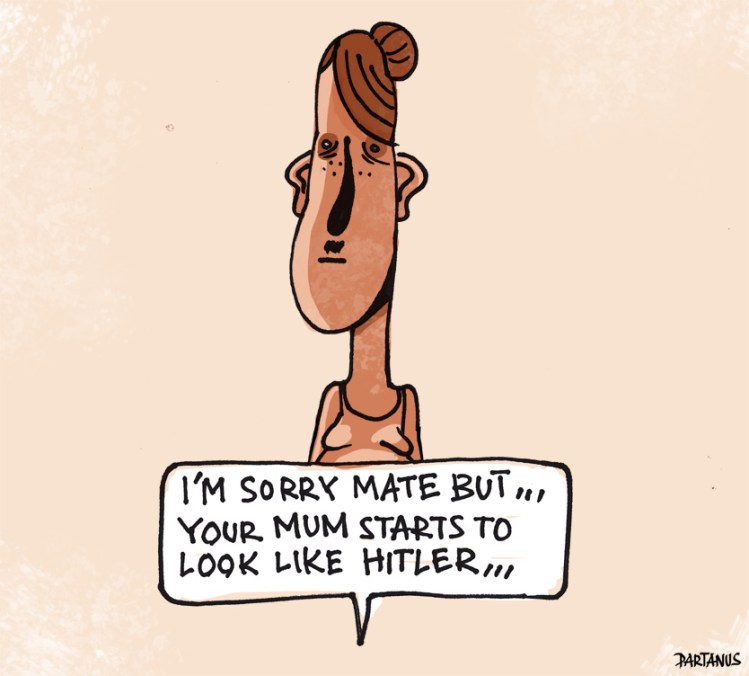 Your mum starts to look a bit like… Posted byPartoonJuly 12, 2011October 3, 2011Posted inOmwentelingen, Sudden changesTags:cartoon I think I’m going for a Turkish dessert in my fridge and a very good night’s sleep. Rate this:Share this: Click to share on Facebook (Opens in new window) Facebook Click to share on X (Opens in new window) X Like Loading... Related Published by Partoon Partoon does 2d and 3D animation, storyboards, comic books, cartoons, acts of madness, storytelling, anti-humor, anti-art, art, humor, drain View more posts