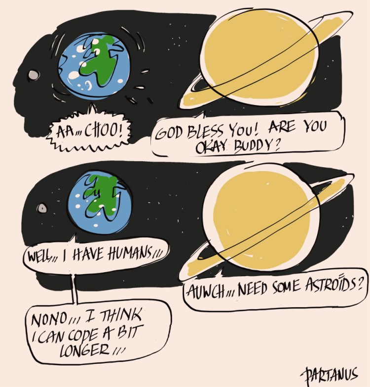 Virus Posted byPartoonSeptember 20, 2011October 3, 2011Posted inOmwentelingenTags:cartoon Forgive me for the roughness of this drawing. I’m so sorry…Really…. But it is about the end of the human race! No time to lose! Dutchanian Englodian Rate this:Share this: Click to share on Facebook (Opens in new window) Facebook Click to share on X (Opens in new window) X Like Loading... Related Published by Partoon Partoon does 2d and 3D animation, storyboards, comic books, cartoons, acts of madness, storytelling, anti-humor, anti-art, art, humor, drain View more posts
